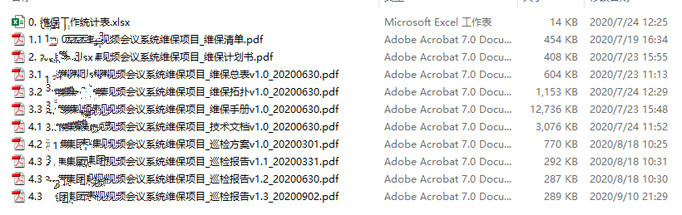 除此以外,我們還會(huì)針對(duì)每個(gè)項(xiàng)目,撰寫詳細(xì)的維護(hù)文檔,保證維護(hù)過程所有問題的可查可追溯,歸檔的同時(shí)也提高了用戶的運(yùn)維經(jīng)驗(yàn),部分維保文檔如下圖所示: